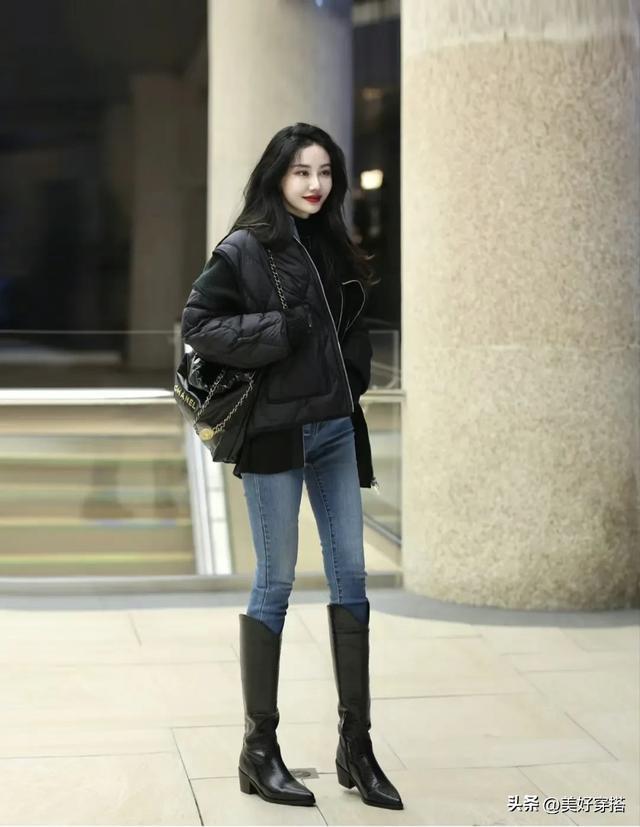 下身搭配方面,紧身牛仔裤是不出错的选择,它既能修饰腿型,又显得干练利落。