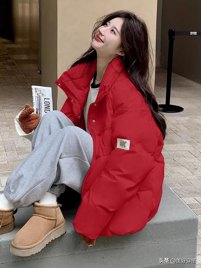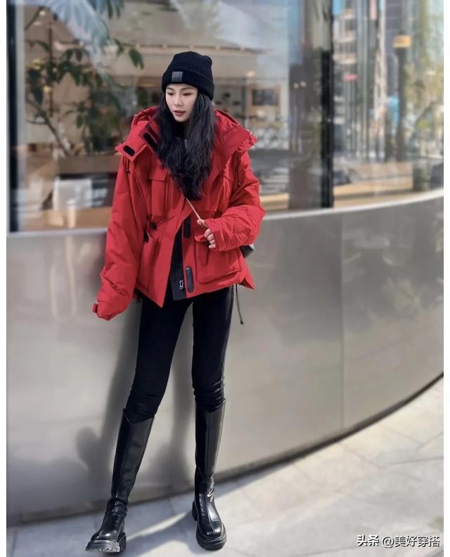 搭配黑色或者白色的雪地靴短靴,都是红色羽绒服最时尚的搭配颜色。这样就能轻松打造出既保暖又时尚的冬日造型。