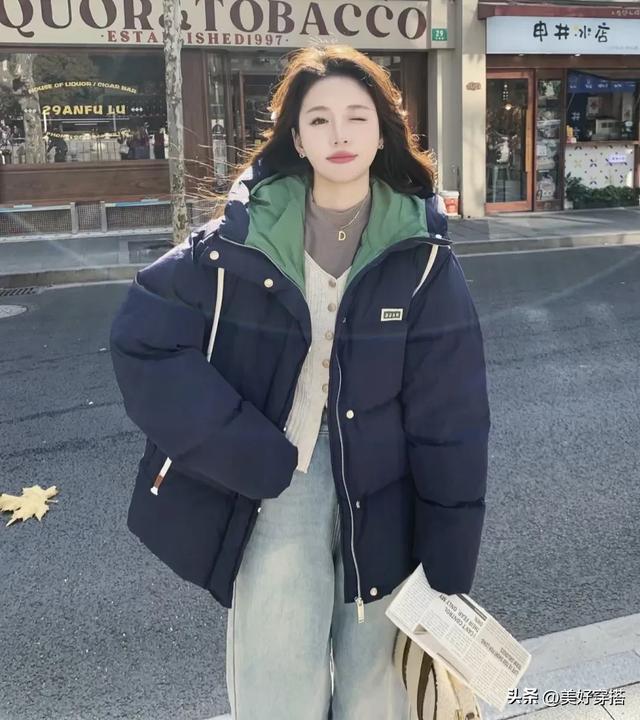蓝色羽绒服在冬天里搭配,会让你看起来增添了一抹清新与活力。灰蓝色,天空蓝和藏蓝色是最时尚的色调。